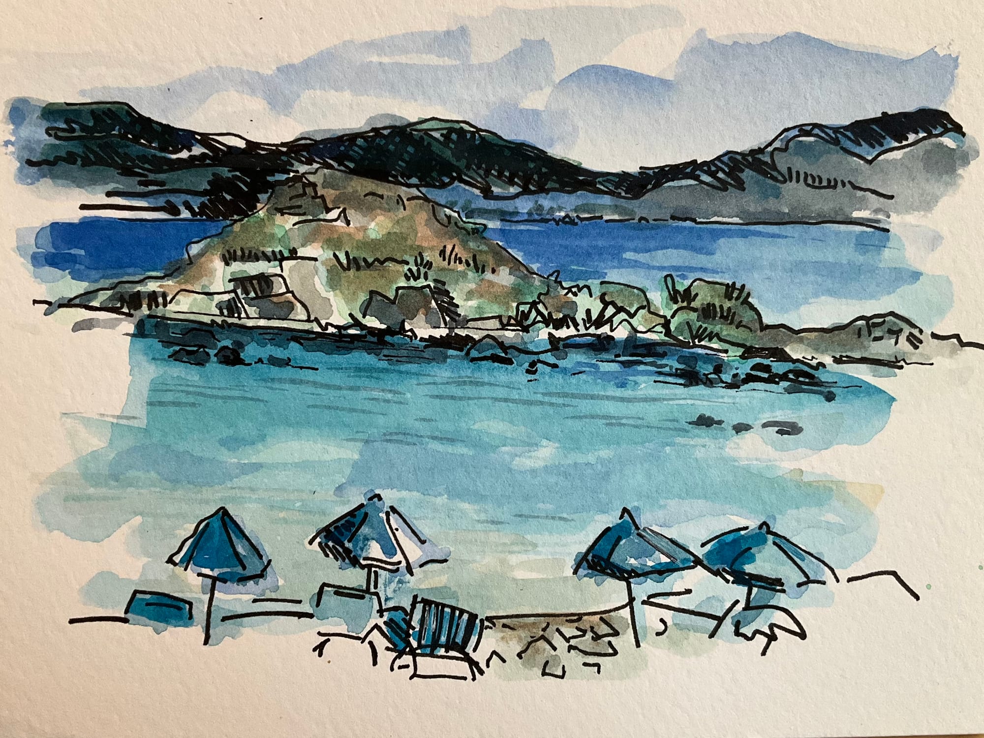 Our travel group took a few minutes to paint in this cafe after a swim in the sea by the tiny Greek island of Kastellorizo, also called Meis. No one worried about their final picture, I don’t remember even sharing them, it was the process that was the pleasure.